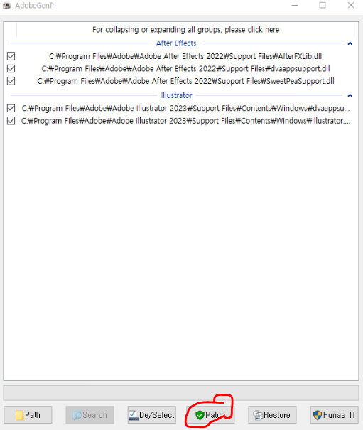 자동으로 크랙 패치가 진행되며,