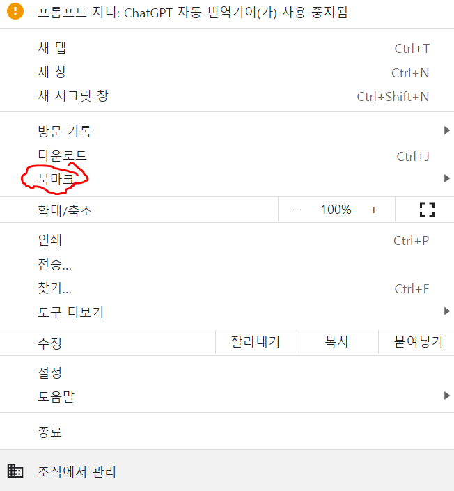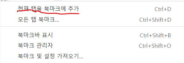 여기서 현재 탭을 북마크에 추가를 눌러주세요.