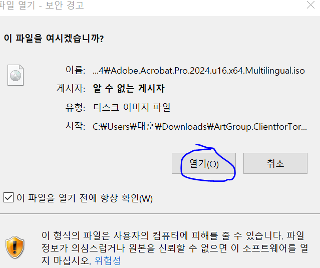 다음 Adobe.Acrobat.Pro.2024 iso파일을 열어주세요.