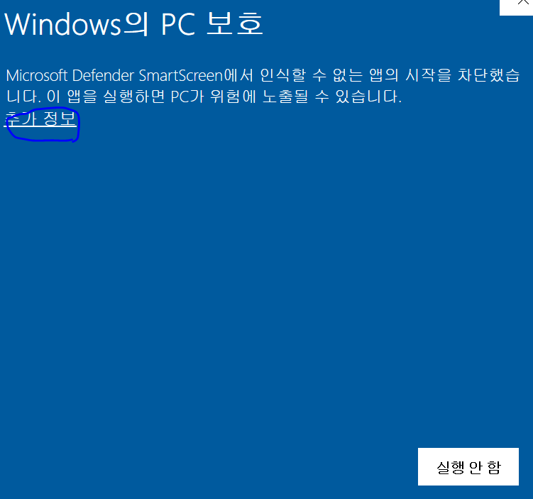 위 창이 나오면 추가 정보를 선택합니다.