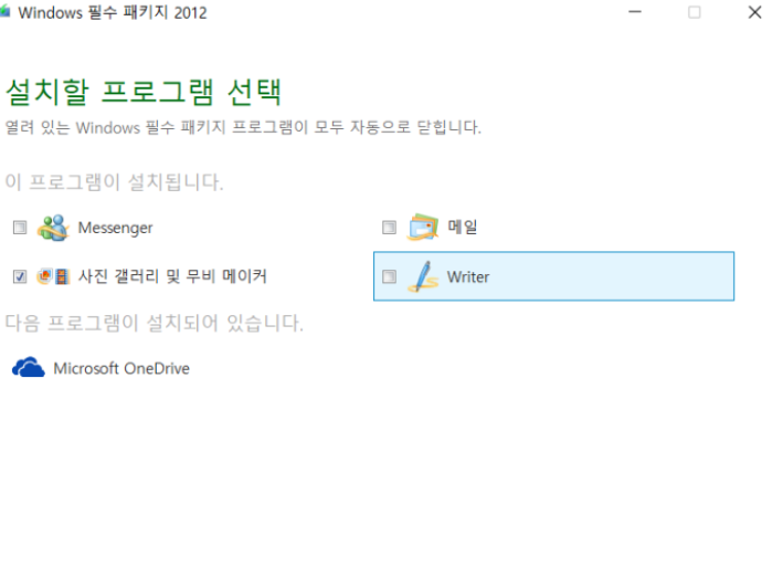 여기서 사진 갤러리 및 무비 메이커를 체크하고 설치를 진행합니다.