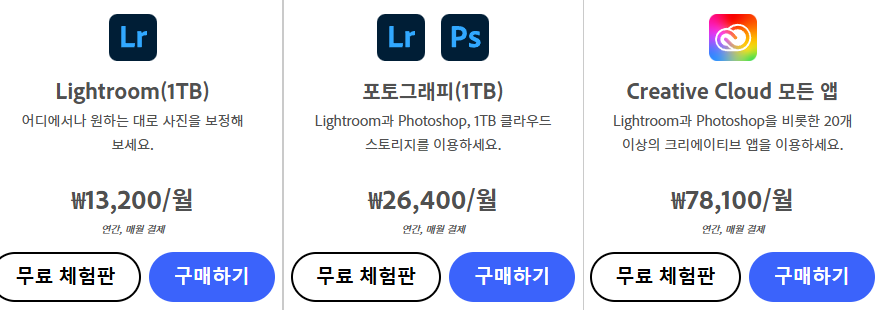 포토그래피 플랜 무료 체험 및 구독 정보는,