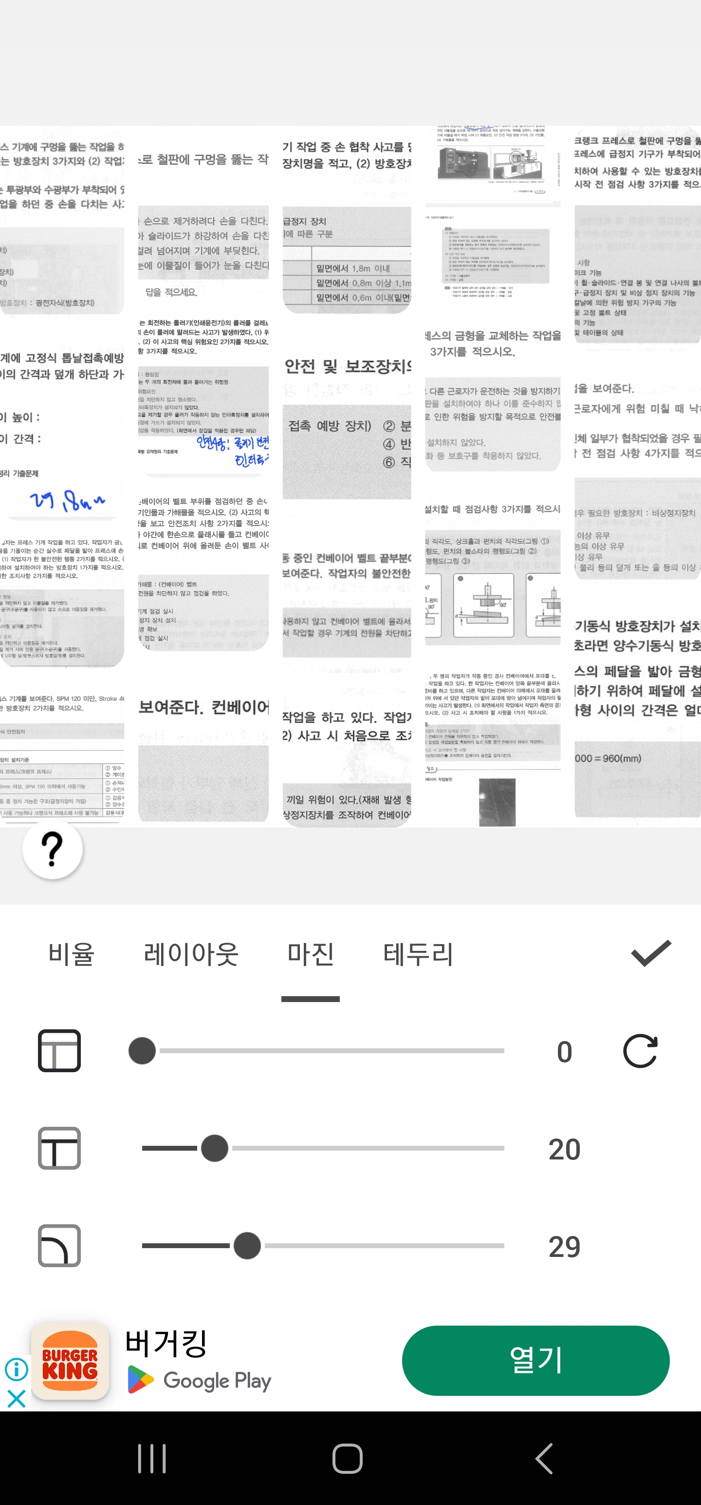 사진 간의 간격 또는 테두리의 형태를 선택할 수 있습니다.