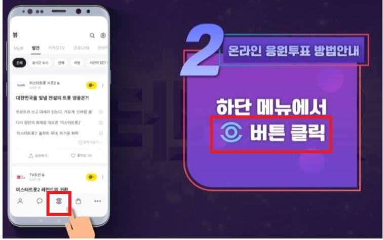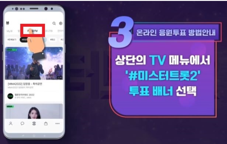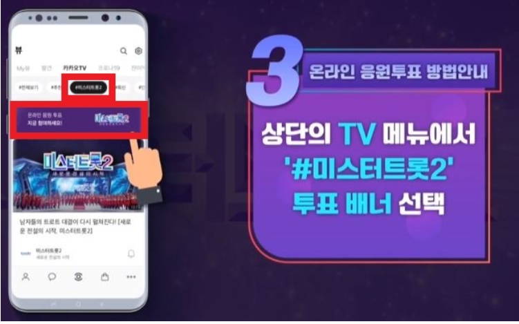 상단의 tv 메뉴에서 #미스터트롯2 투표 배너를 선택해주세요!
