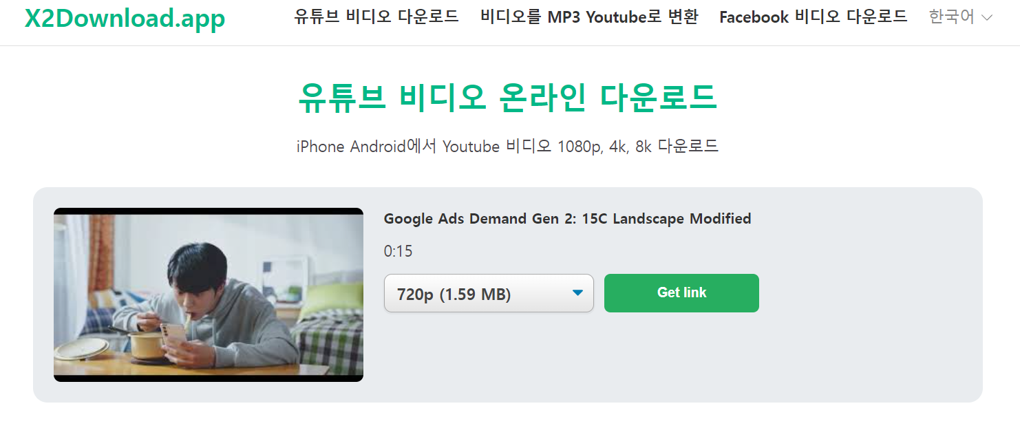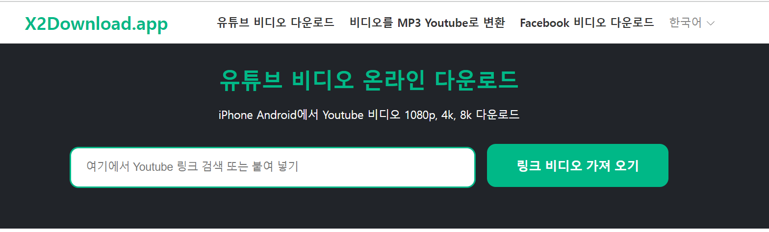 해당 사이트의 명은 X2Downlad.app로 유튜브 동영상 링크를 가져오면,