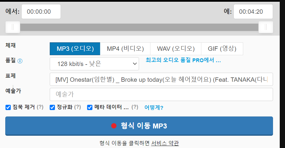 그리고 아래 형식 이동 MP3를 탭 해주세요.