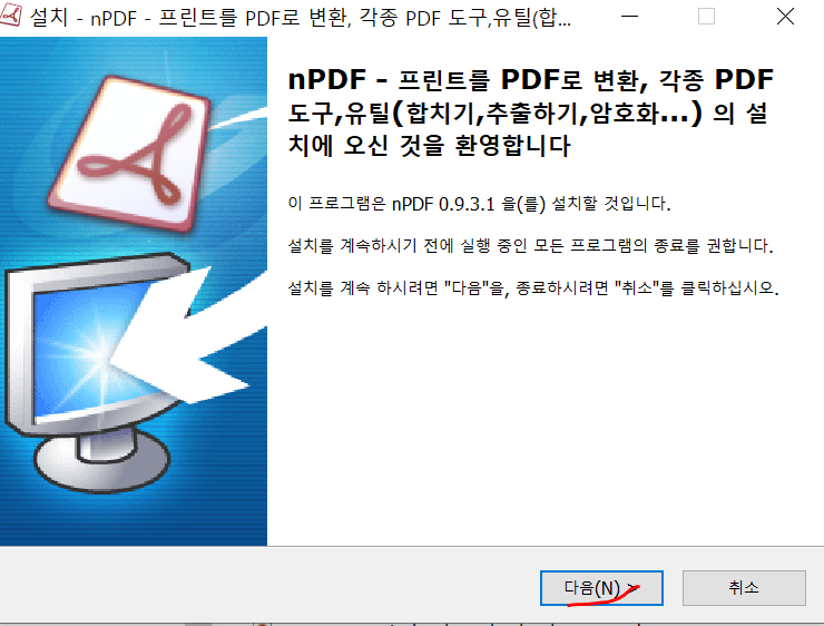 다음 화면에서 nPDF 프린터 설치하기를 체크하신 후 다음을 선택합니다.