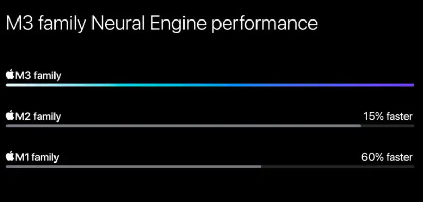 AI 및 머신러닝 작업을 가속화하는 전용 하드웨어인 Neural Engine은 M3 세대에서 약간의 향상을 가져옵니다.