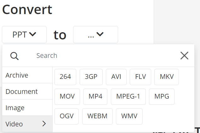 "Presentation Converter" 섹션으로 이동: 홈페이지에서 "Convert to" 섹션 중 "Presentation Converter"로 이동합니다.