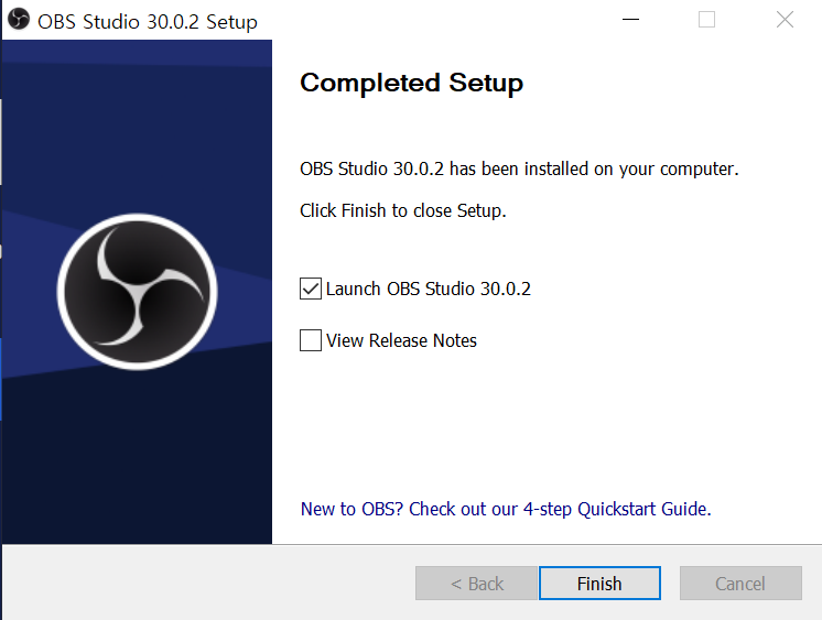 설치 완료: 설치가 완료되면 "Finish" 또는 "Launch OBS Studio"를 선택하여 설치를 마무리합니다.