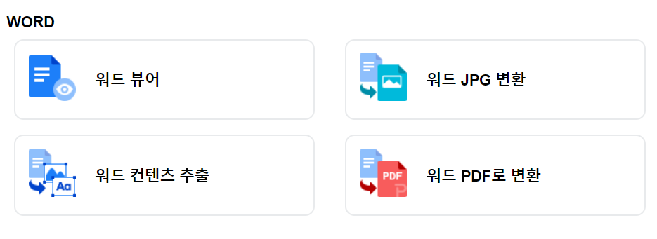 워드 뷰어, WORD JPG 변환, 워드 PDF 변환등이 있습니다.