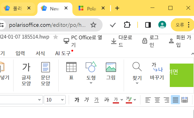 아래는 Polaris Office 웹을 활용하는 기본 사용법입니다.