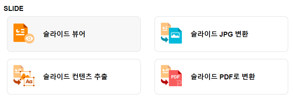 PDF 나누기, PDF JPG 변환, 압축, 병합, 암호해제, 함호잠금, 커버 만들기, 콘텐츠 추출등이 있습니다.
