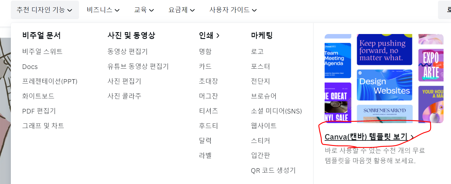 여기서 canca(캔바) 템플릿 보기를 선택해 주세요.