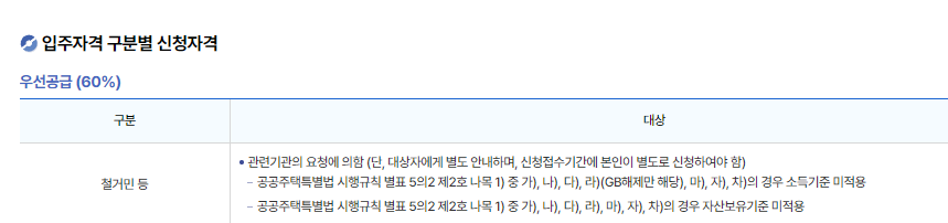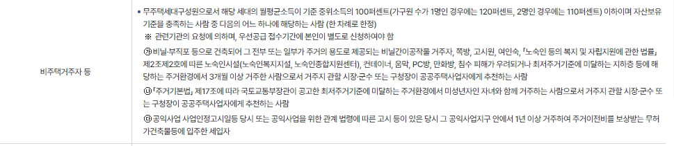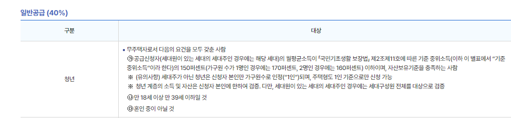 우선공급: 월평균소득이 기준 중위소득 100% 이하 일반공급,