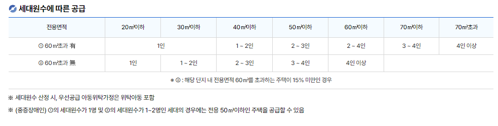 세대원수에 따라 전용면적 및 공급 형태가 다르게 결정됩니다.