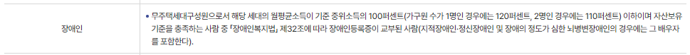 소득기준 및 자산보유기준 충족한 장애인 및 그 배우자 소득기준 미적용