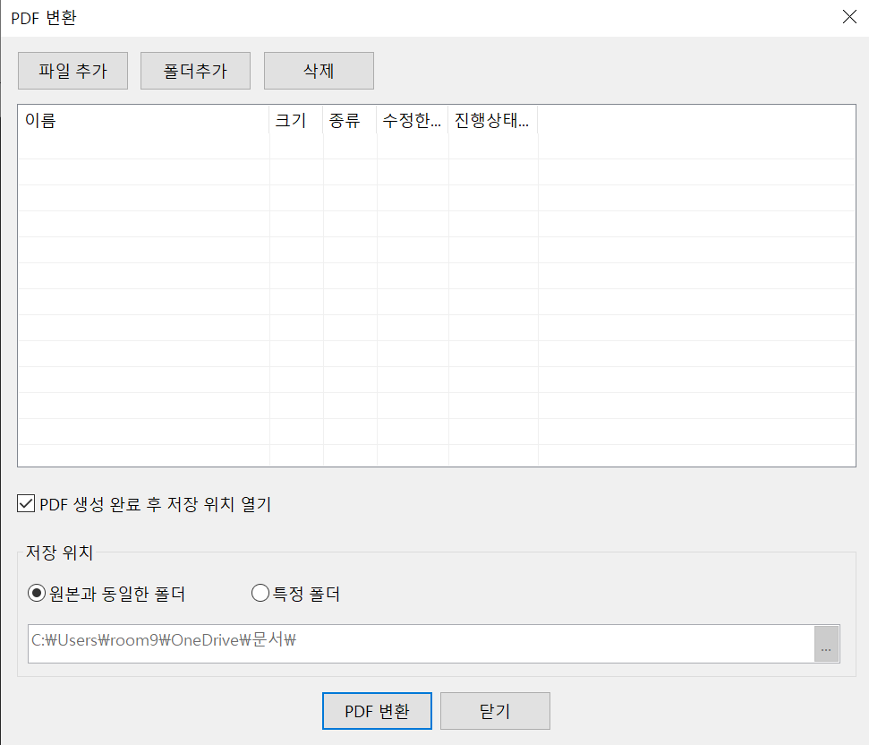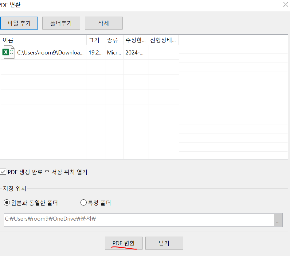 pdf 변환 아이콘을 선택하면 완료됩니다.