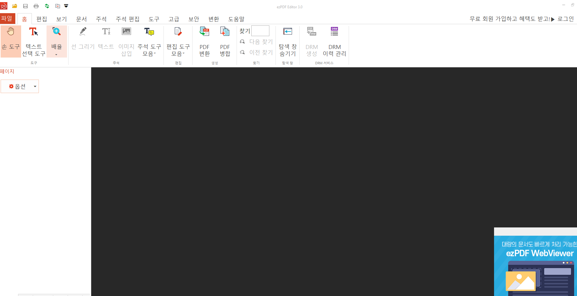 빈 ezPDF Editor 창에 파일을 드래그&드롭하거나,