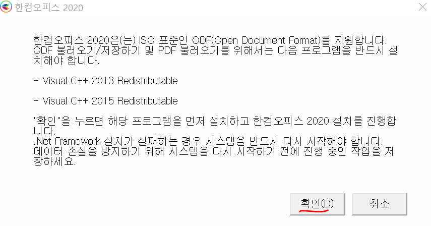 한컴오피스 2020을 실행하기 위한 시스템 요구 사항은 다음과 같습니다.