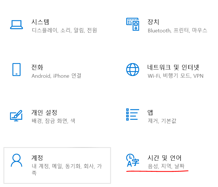 설정 > 시간 및 언어 > 언어로 이동합니다.