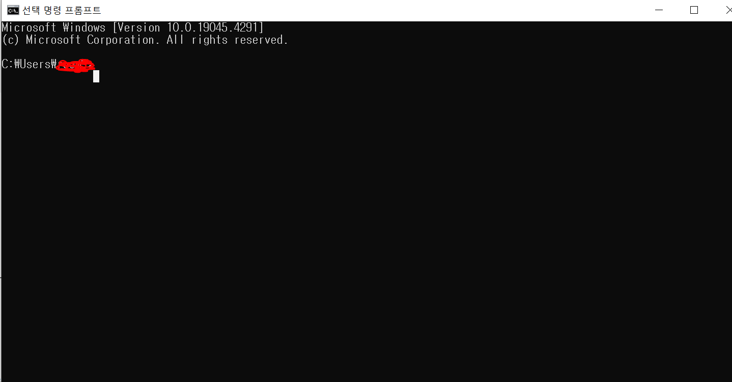 명령 프롬프트 창이 열리면 다음 명령어를 입력하고 Enter 키를 누릅니다.