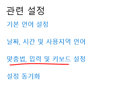 설정 > 시간 및 언어 > 언어 > 키보드 섹션에서 입력기 옵션을 클릭합니다.