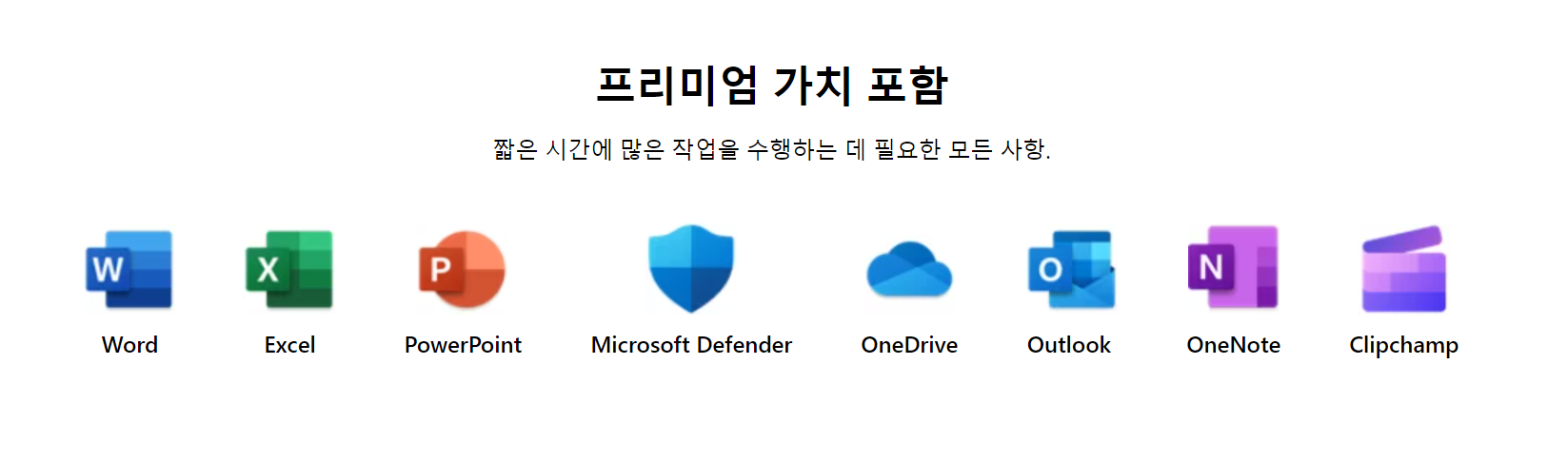 Word, Excel, PowerPoint: 전통적인 오피스 애플리케이션의 최신 버전 제공.