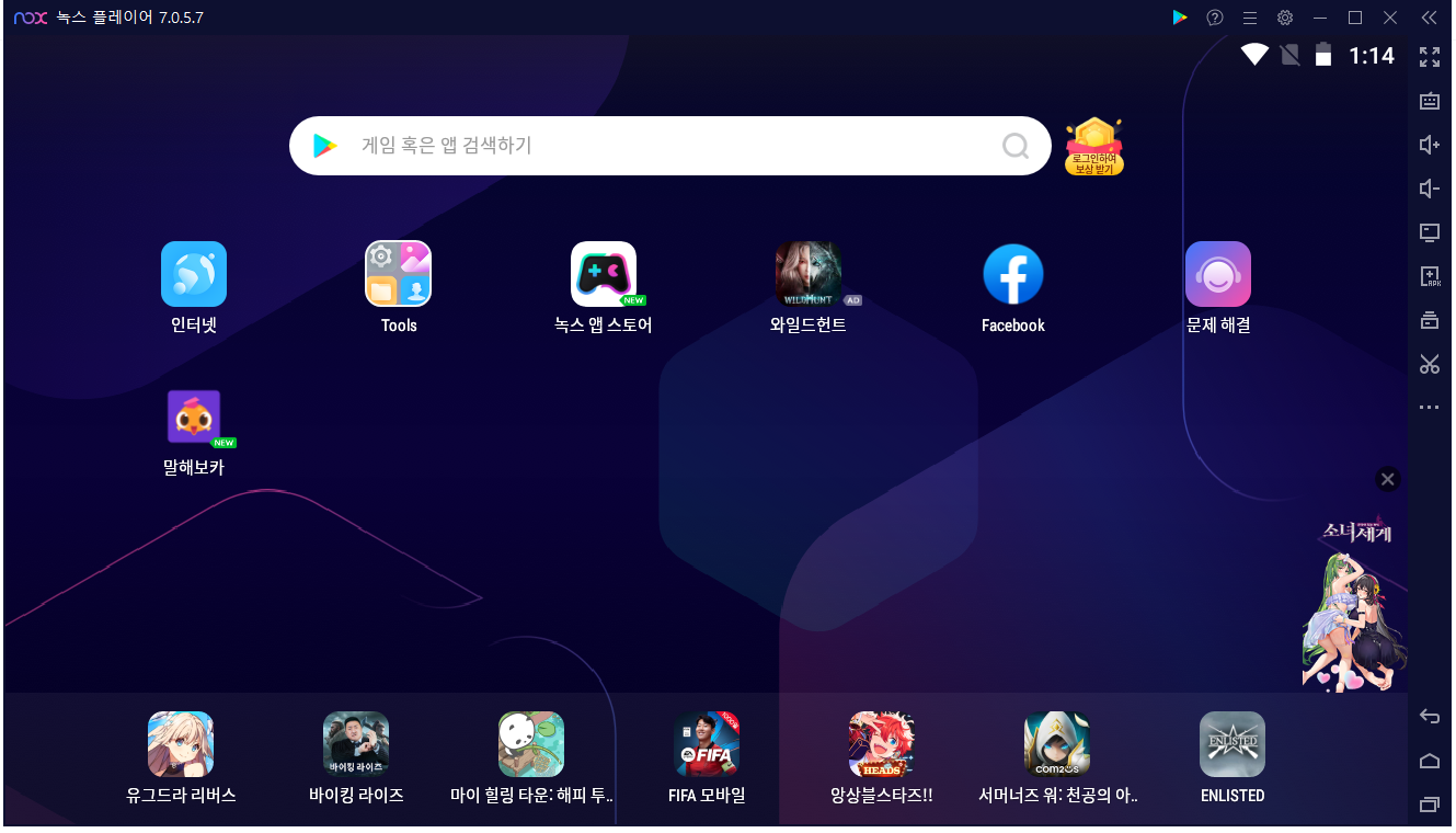 - 앱 다운로드: 녹스의 홈 화면에는 기본적으로 몇 가지 앱이 표시됩니다. 구글 플레이 스토어에 접속하여 다른 앱을 다운로드하고 설치할 수도 있습니다. 검색 기능을 사용하여 원하는 앱을 찾고, 앱 아이콘을 클릭하여 설치합니다.
