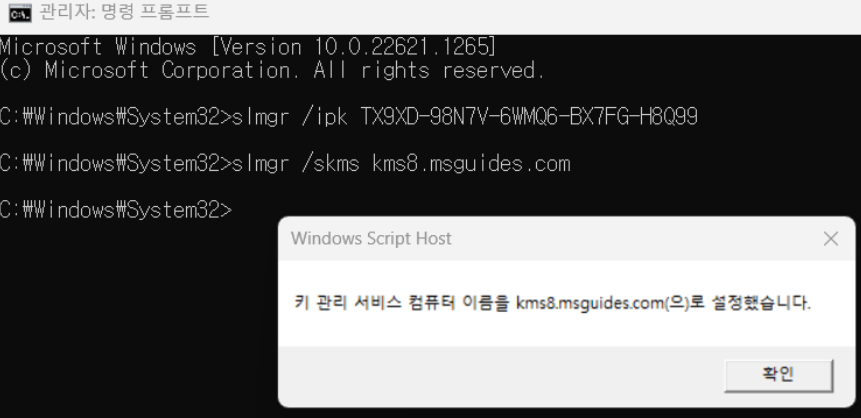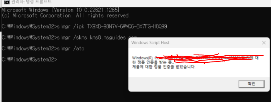마지막 명령어 slmgr /ato를 다시 실행하면 됩니다.