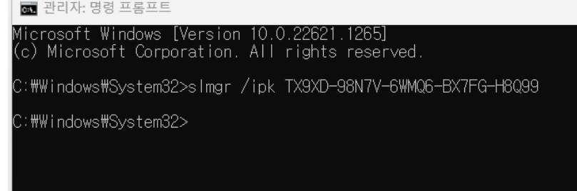 홈 버전: slmgr /ipk TX9XD-98N7V-6WMQ6-BX7FG-H8Q99