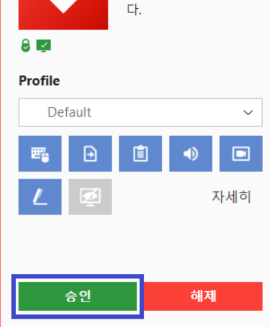 원격 컴퓨터에서 접속 요청을 허용합니다. 이때 원격 컴퓨터 사용자가 접속을 승인해야 합니다.