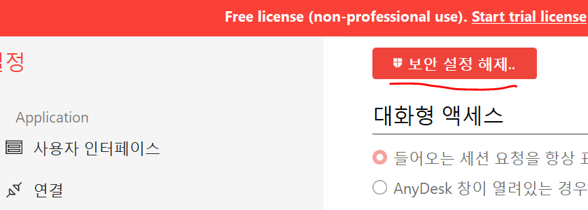 여기서 보안 설정 해제 아이콘을 탭 합니다.